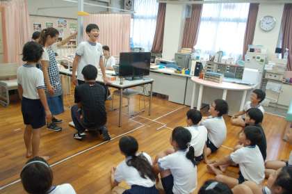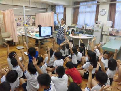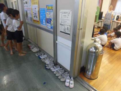 発育測定です。廊下にきちんと上履きを並べて入室します。