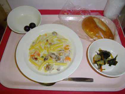 ソフトフランスパン 牛乳 マカロニのクリーム煮