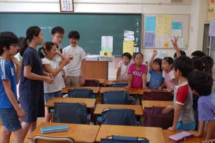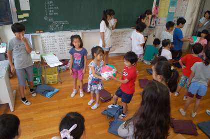 せせらぎ班長が、それぞれの班で事前に計画した遊びを各教室で行いました。班長はこの日のために休み時間に話し合いをしたり、担当の先生と打ち合わせをしたりしてきました。班長ではない6年生の児童も、みんなが打ち解けられるように声をかけたり、下級生の面倒をよくみていました。