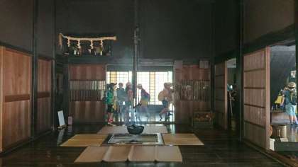 民家園の方の説明を聞きながら、民家の中を見学しました。今とは違う昔を感じたかな。