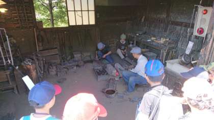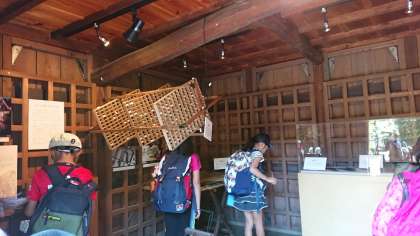 自分たちで自由に見学してます。加治屋さんがあったり、蚕のまゆが展示されていたり、みんな興味津々です。