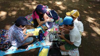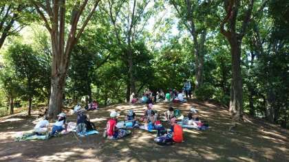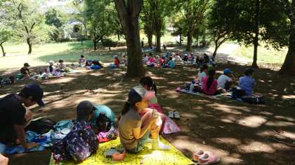 次大夫堀公園の中でお弁当タイム。感謝して、いただきます!