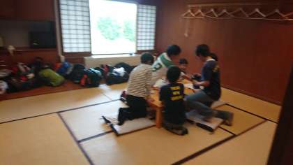 部屋での生活が始まりました。自分たちの力でこれから2泊3日がんばらなくてはなりません。真価が問われます。がんばれー!