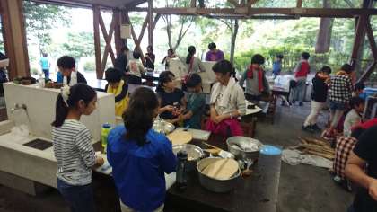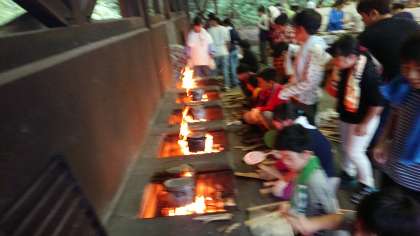 さあ、いよいよ飯ごう炊さんです。自分たちの力で作ります。がんばれー!