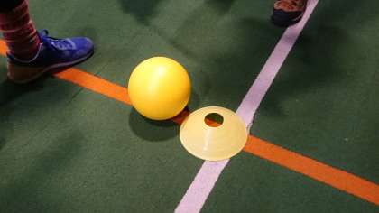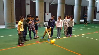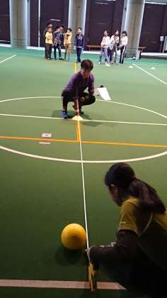 続いて、ボールとどけ。的に一番近くに寄せられた人が勝利。優勝はなんと10センチでした。