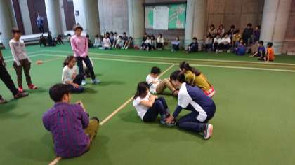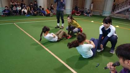 最終個人種目、目指せシックスパック。10秒で何回腹筋できるか?12回が最高でした。