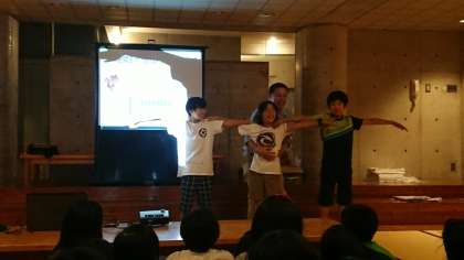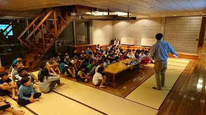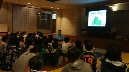 間伐材を使った箸つくり。はじめに、林業や間伐について学習します。