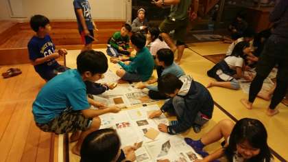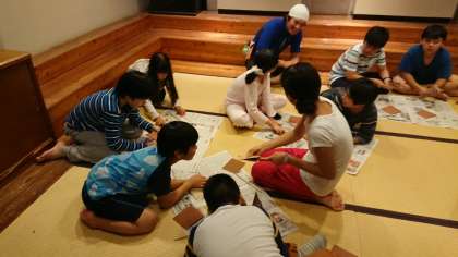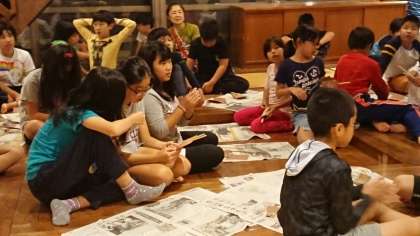 さあ、箸つくりの始まり。紙ヤスリで丁寧にけずります。みんなものつくりへの集中力はすごい!