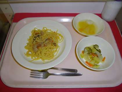 きのこ入りスパゲッティー 牛乳