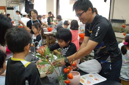 「花を生ける日」の活動の様子です。今月の花は、ハロウィンにちなみ「カボチャ」「ソラナム」「コスモス」「プロテア」です。ワンコインクラブの皆様、ありがとうございました。大切にお世話をします。