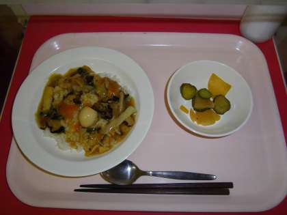 中華丼 牛乳 きゅうりと大根のピリ辛和え