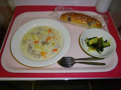 ぶどうパン 牛乳 クリームシチュー 海藻サラダ