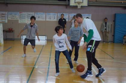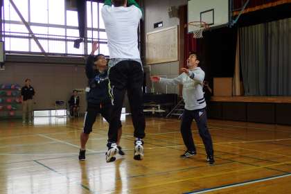 「夢未来プロジェクト」の2時間目は、現役アスリートとの交流でした。Bリーグの現役バスケットボール選手、ジャスティン・ヘラルドさんを講師としてお招きし、講演や模範演技や質疑応答が行われました。代沢小教員との対決、児童との対決もあり、子ども達からは歓声があがりました。