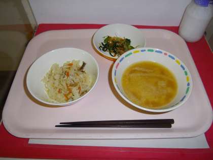 野菜、じゃがいもを具にしたみそ味の汁です。かくし味に