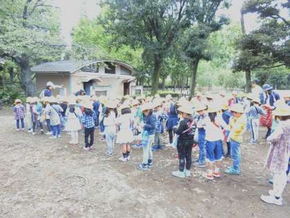 公園への往復は、徒歩です。全校遠足で歩いた道ですので、安全に気をつけ上手に歩くことができました。