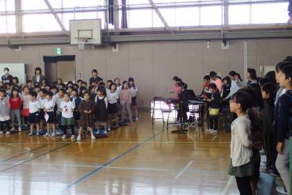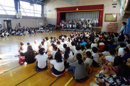 今月の発表は4年生の「いろんなきのみ」の合唱でした。元気だけれど、きれいな歌声が体育館に響きました。