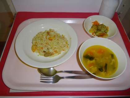 エビピラフ 牛乳 イタリアンスープ フレンチサラダ