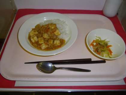 麻婆豆腐丼 牛乳 白菜の中華サラダ