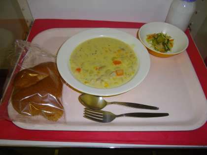 胚芽パン 牛乳 コーンシチュー ツナサラダ
