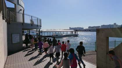 4年社会科見学 船に乗ります。