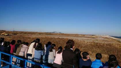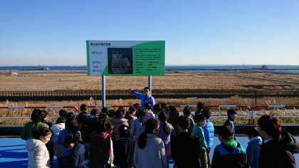バスを降り、眼下に広がる埋め立て地を見張らして、「ゴミ、なくすぞ!」とみんなで声をそろえて叫びました。
