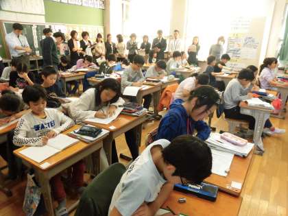 この授業ではスポーツ用車いすの工場について学習することを通じて「日本人としての資質や誇り」を育てることをテーマとしました。子ども達は、資料から読み取ったことを図式化して説明をすることで、中小工場の位置づけを学習しました。とても集中して資料を読みふける姿、お互いの発表をよく聞く姿が素晴らしかったです。