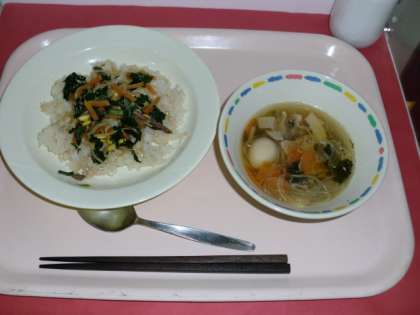 *ビビンバは、肉そぼろやぜんまい、タケノコなどを炒めて