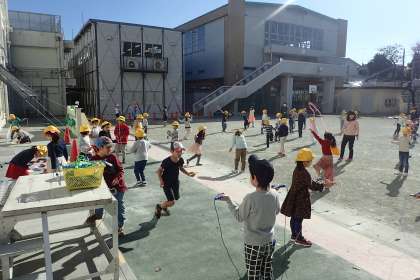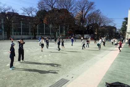 今月4日から体力を高める取り組みとして「なわとびタイム」が中休みに設定され、子ども達は低・高学年で1日おきになわとびに取り組んでいます。できる技に応じて級が設定されており、より高い級を目指してがんばっています。低学年も、高学年も、カードを片手に、先生や友だちと技を見合う姿がほほえましいです。