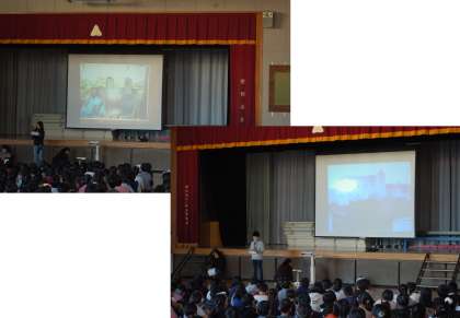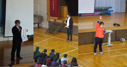 海外派遣でオーストラリア・オーストリアに行った児童二人の報告がありました。それぞれに感じたことを、立派に全校児童に話すことができました。