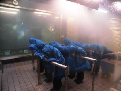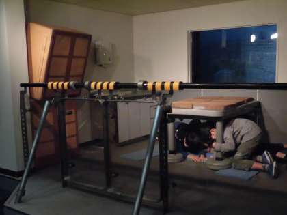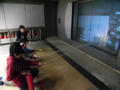 地震の映像を観た後、3つのグループに分かれて、それぞれ防災体験です。
