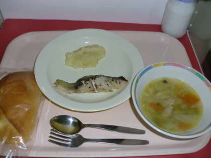 ダイスチーズパン 牛乳 魚のハーブ焼き