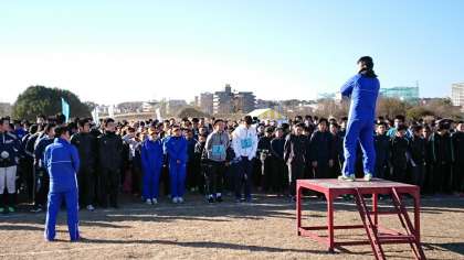 第7回世田谷子ども駅伝が多摩川河川敷で始まりました。風が強く寒いですが、熱い戦いが始まります。