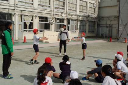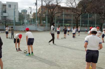 東京ヴェルディのコーチを二人をゲストティーチャーにお招きし、5年生対象にサッカー教室が行われました。ウォーミングアップに始まり、様々なペアトレーニング、そして最後は全員サッカー。コーチからの指示が段々複雑に難しくなる中、工夫したり、相手と呼吸を合わせたりしながら、運動に取り組んでいました。全員サッカーは、友だちと手をつないで行うという、変則的なものでした。友達の得点をチーム全員で喜び合うとポイントアップ!というルールに触発され、皆で盛り上がり、一体感を味わうこともできました。