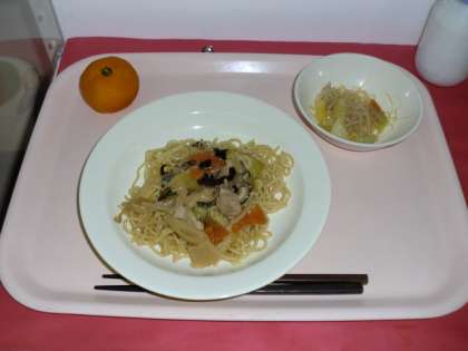 中華麺五目あんかけ 牛乳 春雨サラダ くだもの