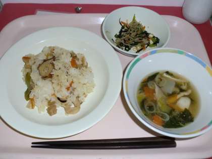 かしわずし 牛乳 のっぺい汁 小松菜サラダ