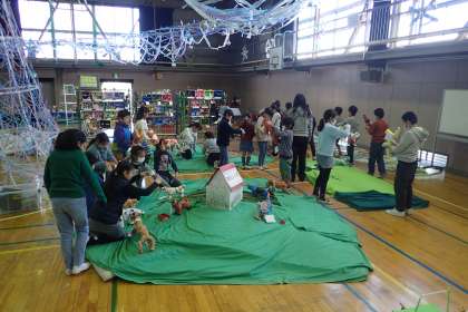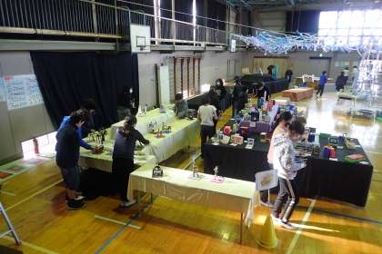 それぞれの作品を片付けていきます。壊さないように慎重に、ひとつずつ運んでいきます。全ての作品を搬出したら、掲示用のパネルや、作品を置く台座等に使われた長机・ひな壇等を5年生が片付けます。学校行事に関わることによって、高学年の自覚が高まっていきます。作業後に、担任の先生から労いの言葉と、「自分から積極的に仕事を引き受けられる人になってほしい」とメッセージがありました。