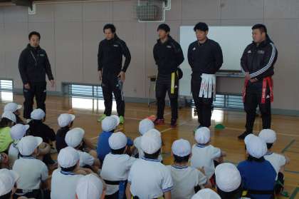 選手たちの本物のプレーに歓声をあげながら、生き生きとした表情でタグラグビーを楽しんだ子どもたち。今日学んだことを、体育の授業にも生かしていってほしいです。