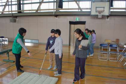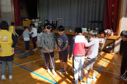 地域の方々の協力で、福祉体験学習が行われました。