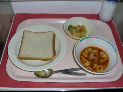 ツナトースト 牛乳 ミネストローネ フレンチサラダ