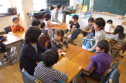 一生懸命取り組む2年生に、1年生は真剣なまなざしを向け、耳を傾けていました。学期も終わりに近づき、それぞれの子ども達に次の学年への期待が感じられました。