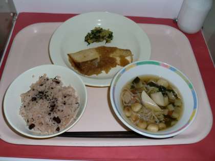 赤飯 牛乳 ぶりの照り焼き こづゆ おひたし