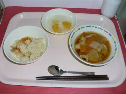 たけのこごはん 牛乳 豚汁 杏仁豆腐風豆乳ゼリー
