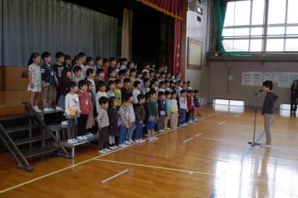 また、1年生も入学して短い時間で練習した「どっきどき1年生」の歌を元気に歌うことができました。
