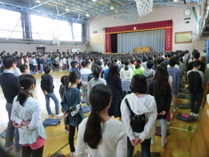 最後に1年生もひな壇から降りてみんなと一緒に並び、校歌を歌いました。これで1年生も代沢小学校の一員です。