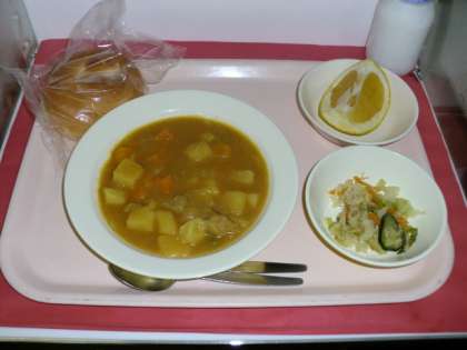 *給食でカレーのときは、ごはんで食べることが多いの