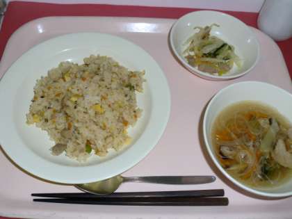 チャーハン 牛乳 春雨スープ 白菜の中華サラダ