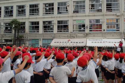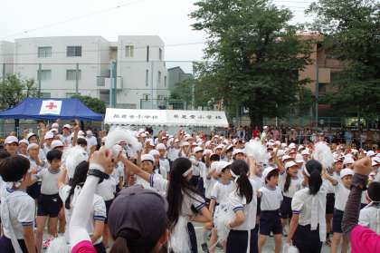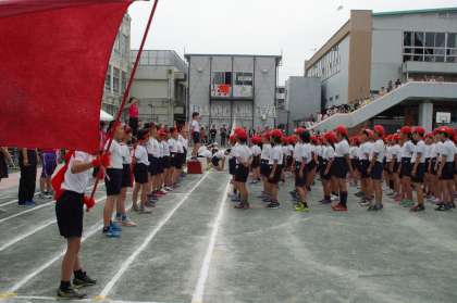 毎年恒例の運動会の歌。赤も白も元気いっぱい歌いました。