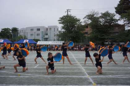 4年生は、今年も代沢小伝統の花笠音頭を踊りました。キレのある笠さばきで、観客を魅了しました。手作りの花笠は色鮮やかで、踊りに花を添えていました。