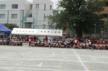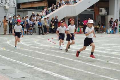 中学年の仲間入りをした3年生は、今年から曲線を走ります。カーブがきついので、体の調節が必要!一生懸命な走りが印象的です。