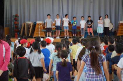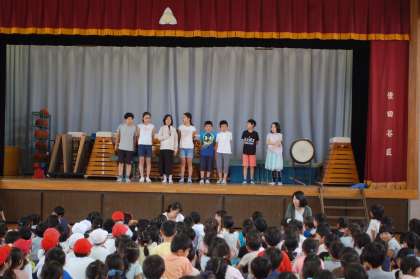 今日の児童集会は、「ポパイさんが言いました」。ポパイさんが言った動きをする、というゲームです。ポパイさんが言わない動きや、ドナルドダックが言ったりする動きにも、うっかり動いてしまい、アウトになる人もチラホラ。ただ、よーく聞いていると、復活できるポパイさんの指示もあり、集会委員のやさしさを感じました。